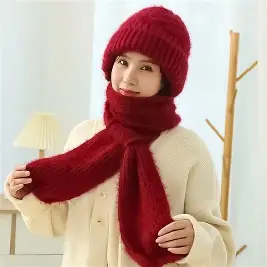 🧣 উইন্টার প্রোটেকশন উইন্ডপ্রুফ ক্যাপ ও স্কার্ফ (মেরুন রঙে)